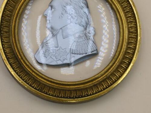 Effigie en pendentif en cristallo-cérame (pâte de porcelaine incluse dans un verre en cristal), représentant probablement la duchesse d’Angoulême.